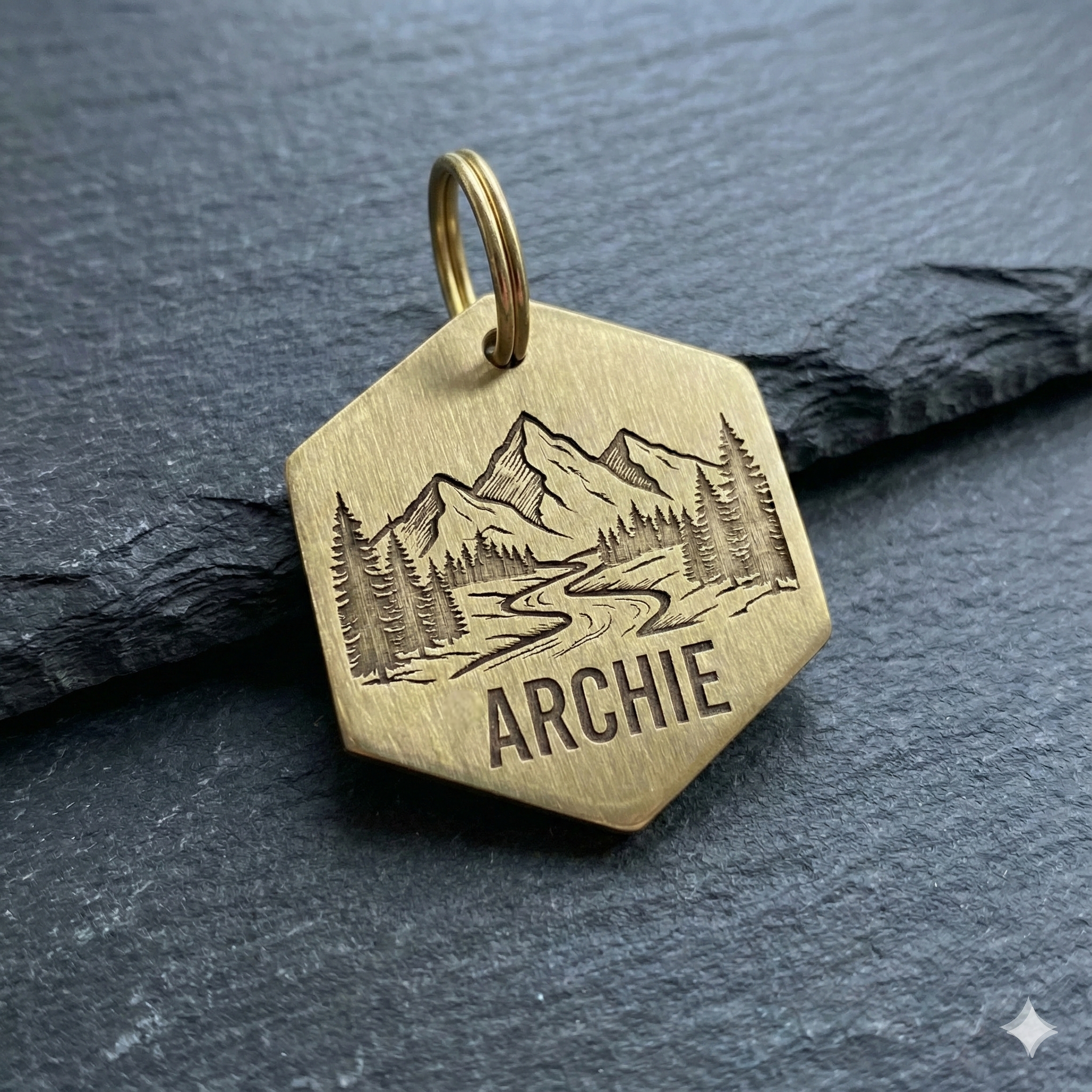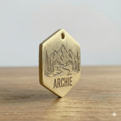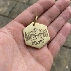 Цей латунний жетон-адресник створений для тих, хто цінує якість, унікальний стиль та надійність у будь-якій подорожі. Стильний шестигранник з авторським гравіюванням підкреслить пригодницький дух вашого чотирилапого друга.