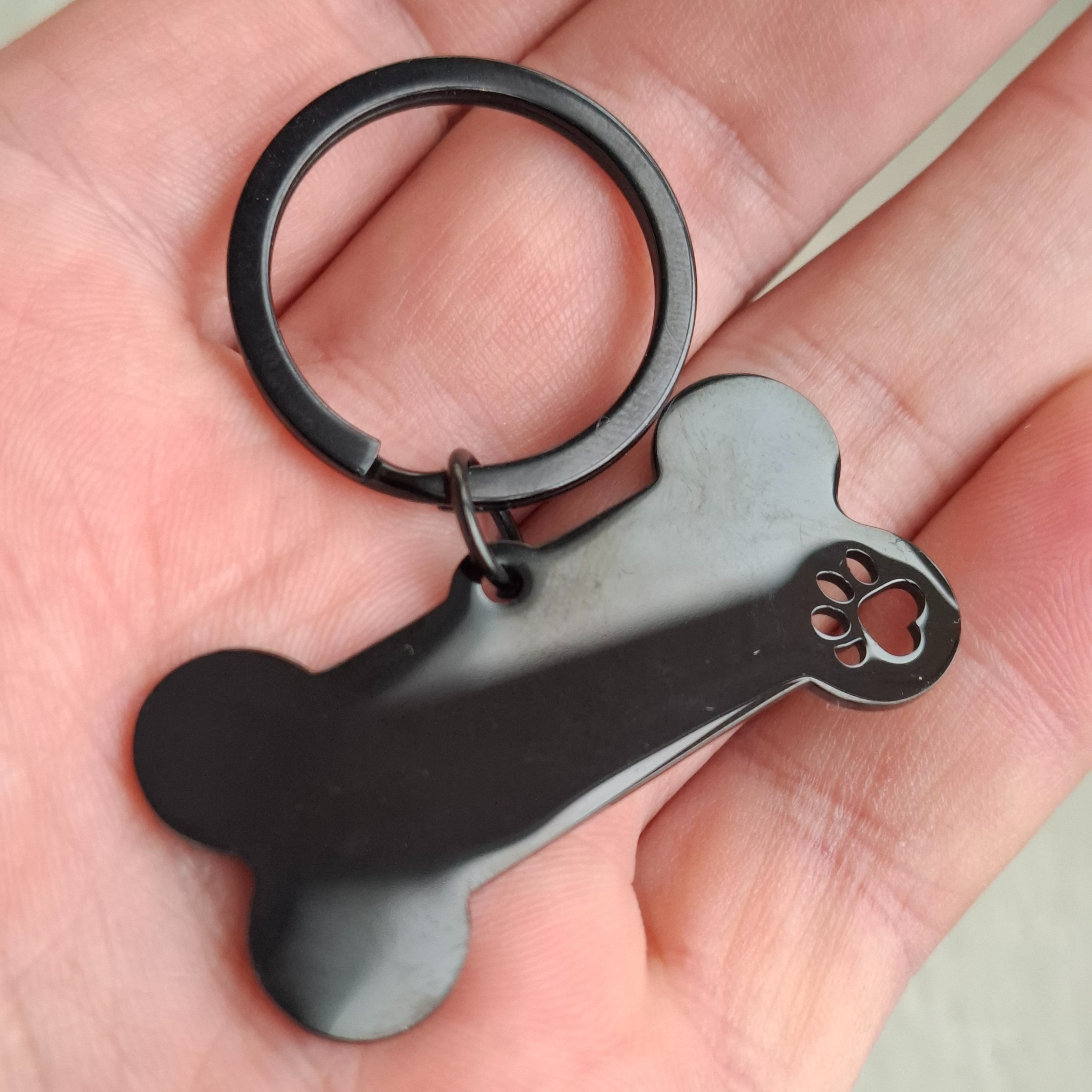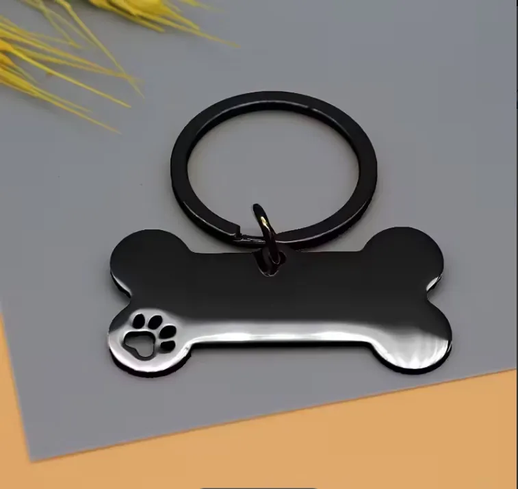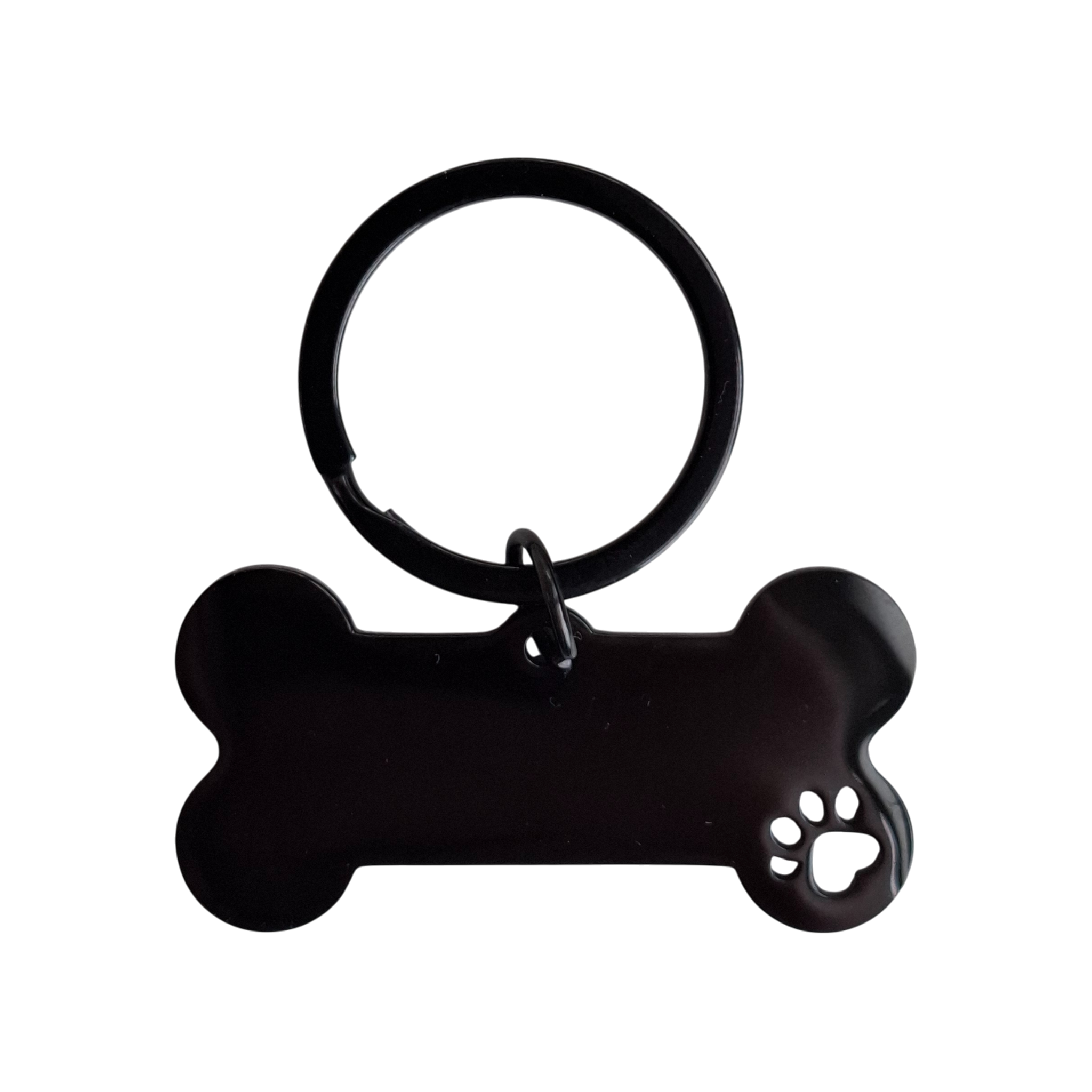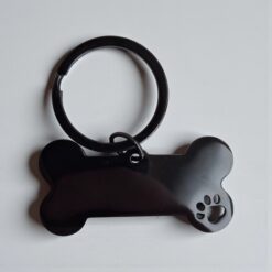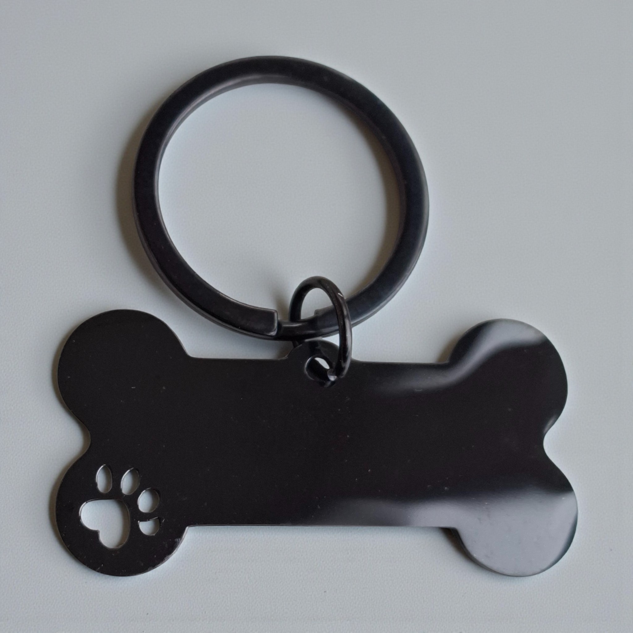 Поєднайте надійність та милий дизайн. Цей жетон у формі кісточки має особливий шарм завдяки декоративному вирізу-лапці в кутку. Глибокий чорний колір сталі надає аксесуару сучасного та дорогого вигляду, який пасуватиме до будь-якого нашийника.