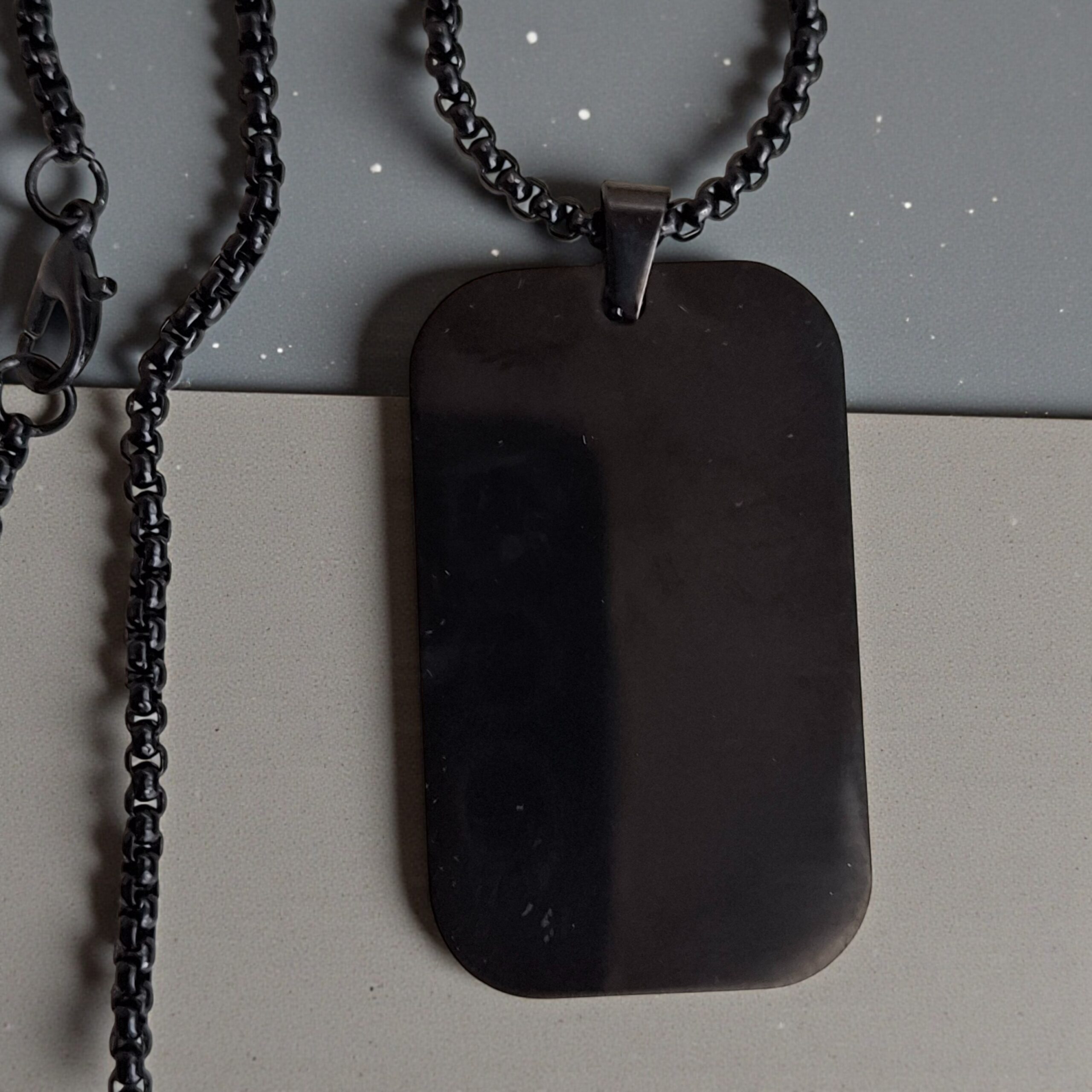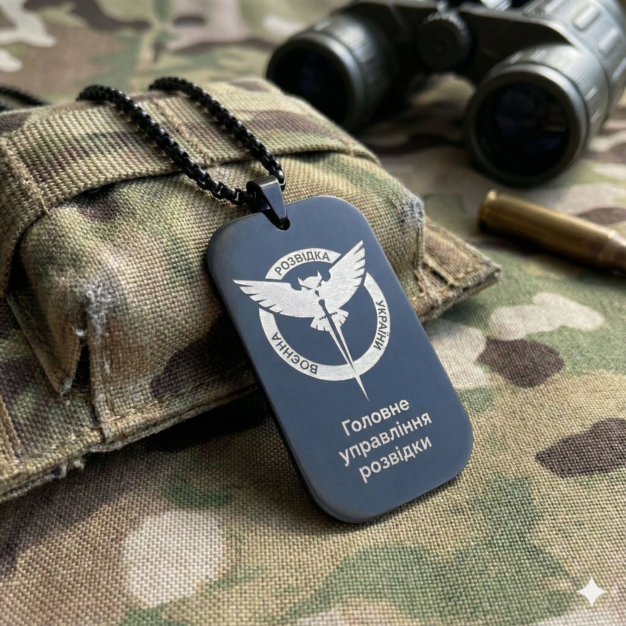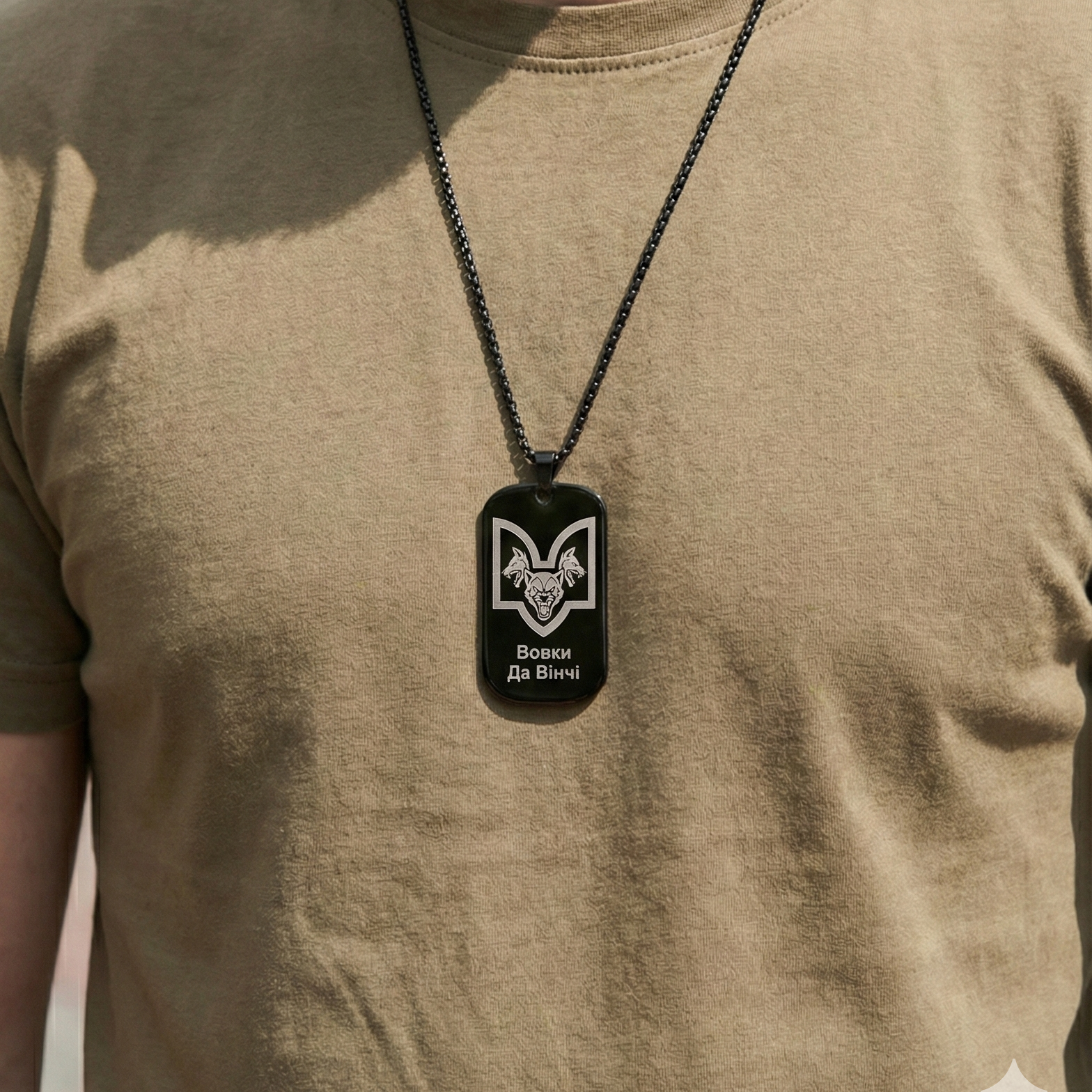 Технологічність та стиль Виріб виготовлено з гіпоалергенної нержавіючої сталі, яка не темніє, не іржавіє та не боїться води. Чорне матове покриття виглядає стильно, стримано та “тактично”, не створюючи зайвих відблисків на сонці. Лазерне гравіювання “випалює” верхній шар покриття, оголюючи світлу сталь, завдяки чому напис виходить максимально чітким та читабельним навіть у сутінках.