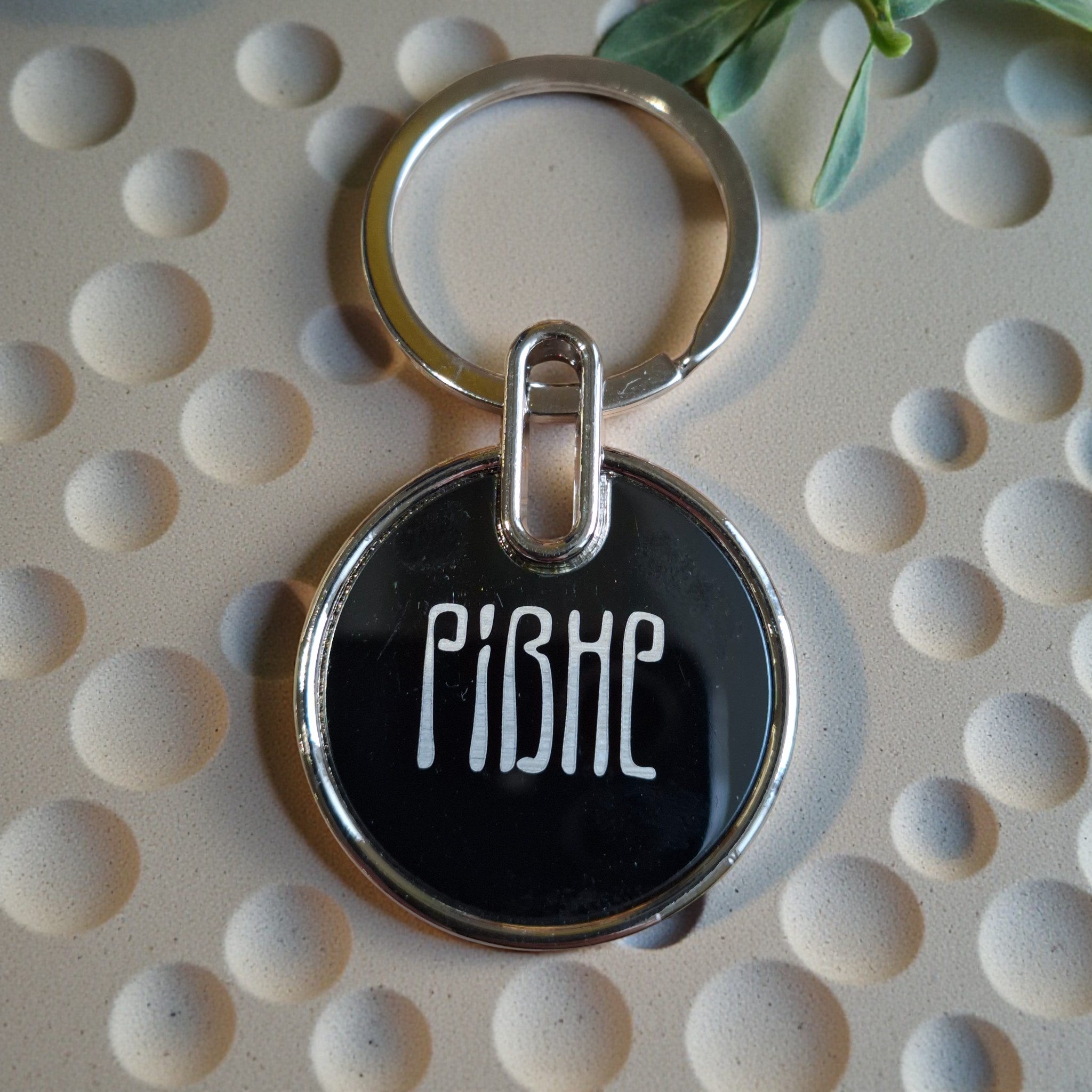 Класичний круглий металевий брелок з лазерним гравіюванням